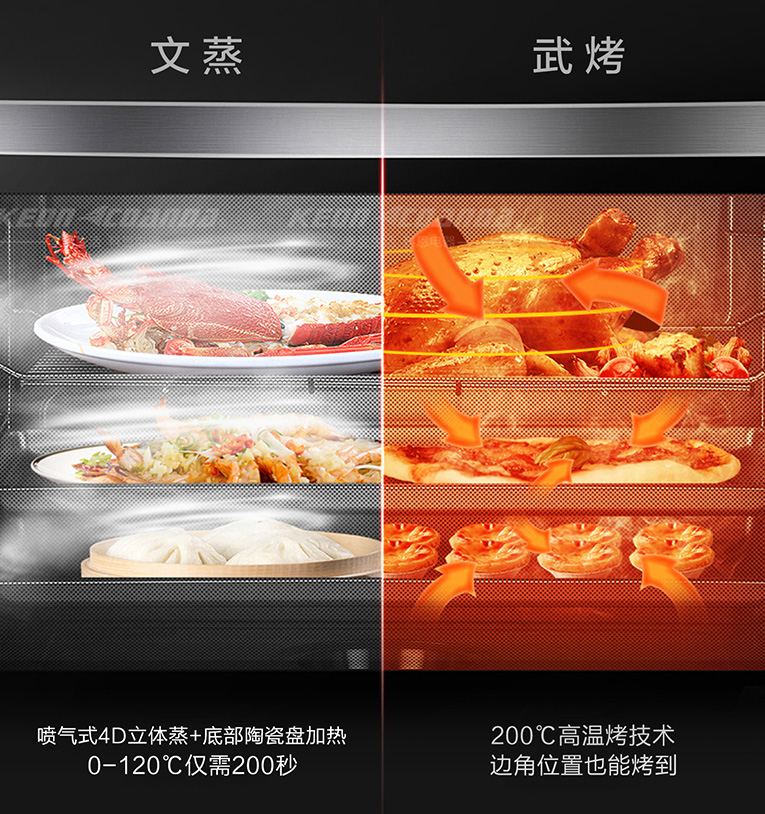 在烹飪方面,科恩智能蒸烤消一體集成灶搭載62L黃金容量蒸烤箱,純蒸、高溫蒸、嫩烤、熱風(fēng)烤等多種烹飪模式選擇,廣域控溫,4D立體直噴蒸烤模式設(shè)計(jì),使蒸箱加熱速度一提再提,四面受熱更均勻,熱風(fēng)對流立體烘烤色香味俱全,能夠全面喚醒食材鮮美營養(yǎng)并色澤更亮麗!5.0KW大火力設(shè)計(jì),能夠肆意爆炒,美味快速出鍋,熱量集中不分散,鑄鐵鍋架帶雙聚能環(huán)設(shè)計(jì),使熱效率更高,59銅火蓋,耐高溫,導(dǎo)熱性更強(qiáng),使用壽命更長,全面優(yōu)于他牌同類產(chǎn)品!
