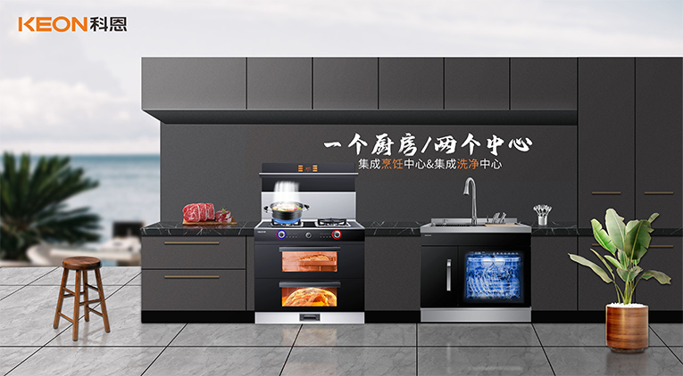 全方位領跑、全行業領先!2021年,科恩集成灶全方位實現新戰略,產品上發布“一個廚房,兩個中心”為核心的集成烹飪中心以及集成凈洗中心。