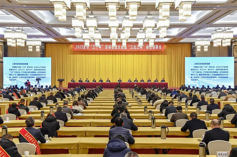 新春伊始,萬象更新,嵊州市“三個(gè)年”活動(dòng)推進(jìn)大會(huì)暨“三比三爭(zhēng)”動(dòng)員部署會(huì)召開。市委書記徐建役在會(huì)上強(qiáng)調(diào),為進(jìn)一步推動(dòng)全年工作落到實(shí)處,市委、市政府決定組織開展“共富建設(shè)年”、“項(xiàng)目推進(jìn)年”、“作風(fēng)提升年”這“三個(gè)年”活動(dòng),并同步開展以“比實(shí)績(jī)、爭(zhēng)先進(jìn),比攻堅(jiān)、爭(zhēng)先鋒,比變革、爭(zhēng)先行”為主要內(nèi)容的“三比三爭(zhēng)”活動(dòng)。會(huì)議通報(bào)表彰和獎(jiǎng)勵(lì)了2021年度先進(jìn)單位、企業(yè)和個(gè)人。