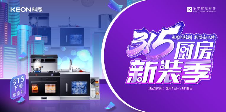 3月1日-3月18日進(jìn)科恩門店,集成灶十大品牌、廚電行業(yè)十大品牌科恩集成灶315廚房新裝季,實(shí)力見證好品質(zhì)!