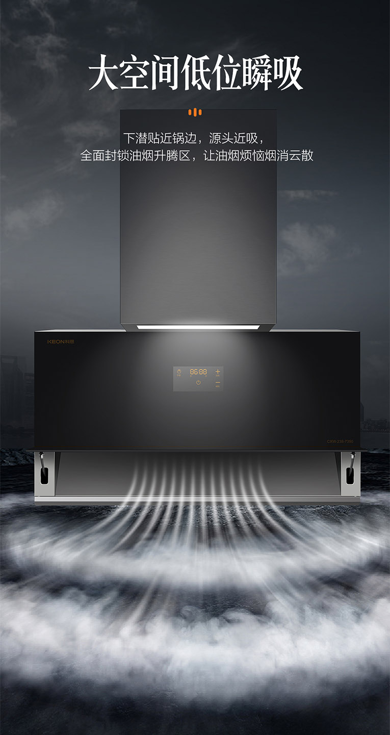 解決高層排煙問題,科恩新一代大吸力煙機7350樂享智慧廚房!