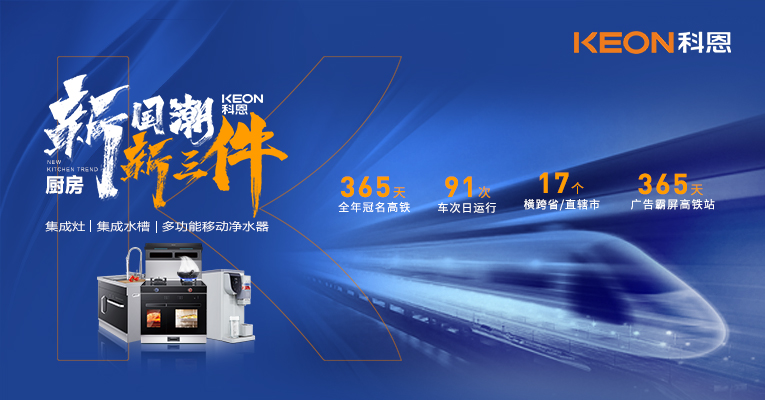 在品牌建設(shè)上,科恩集成灶煥新布局品牌建設(shè),構(gòu)燴“廚房新國潮科恩新三件”品牌理念,傳遞廚房幸福感。另外,科恩更是斥資800萬,“科恩號”高鐵全年冠名,橫跨17個省/直轄市,日運行91車次,全年飛馳于全國各地,科恩品牌之聲響徹大江南北,實現(xiàn)億次+曝光。