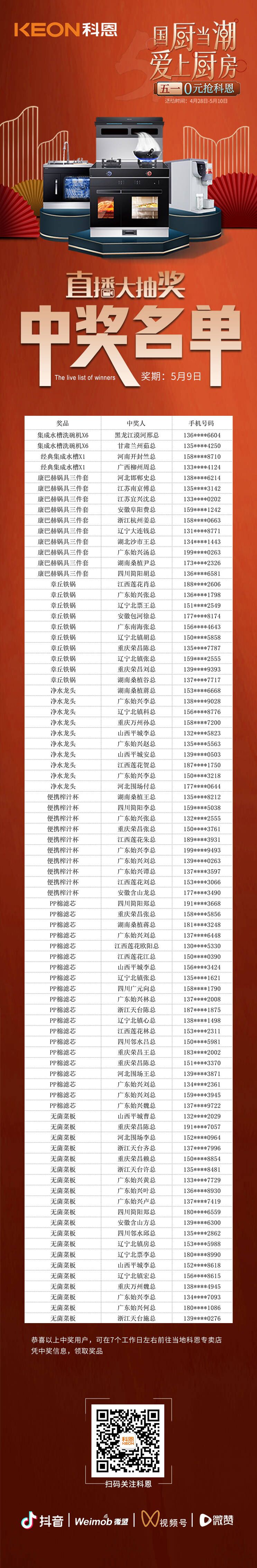 國廚當潮,愛上廚房——0元搶科恩活動正在火爆進行中,為回饋消費者,科恩電器特于5月9日晚舉行了第二輪直播大抽獎活動。在5日公布了第一輪直播大抽獎中獎名單后,小編收到了很多用戶的后臺留言,紛紛詢問第二輪大抽獎的時間以及參與方式,本次活動吸引了眾多消費者前來參與,活動精彩紛呈,直播間也熱鬧非凡,全國各地的朋友們積極參與,用指尖傳遞著國廚當潮,愛上廚房的精致廚房新理念。