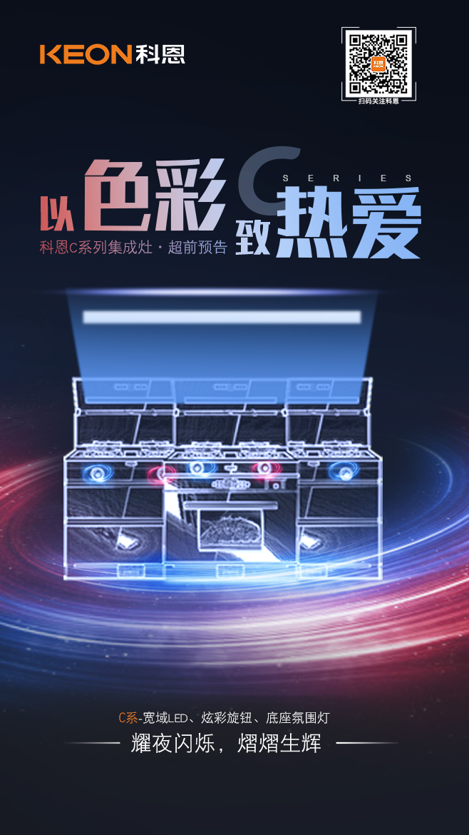 一眼,鮮明,再睹,目不轉睛,科恩C系集成灶,打破常規邊界,同向而行以色彩致熱愛,將無限溫柔與浪漫一并贈予你!