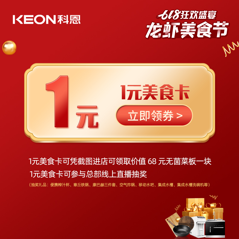 萬人品美食,0元搶科恩,5月28日——6月18日,凡購買1元美食特權(quán)卡的用戶,即可參與總部線上直播抽獎(jiǎng)活動(dòng):便攜榨汁機(jī)/章丘鐵鍋/康巴赫鍋具三件套/空氣炸鍋/移動(dòng)水吧/集成水槽等/集成水槽洗碗機(jī).1元購卡,送價(jià)值68元無菌菜板,還能獲得直播大抽獎(jiǎng)資格,重磅豪禮有機(jī)會(huì)收入囊中,有沒有很心動(dòng)?!