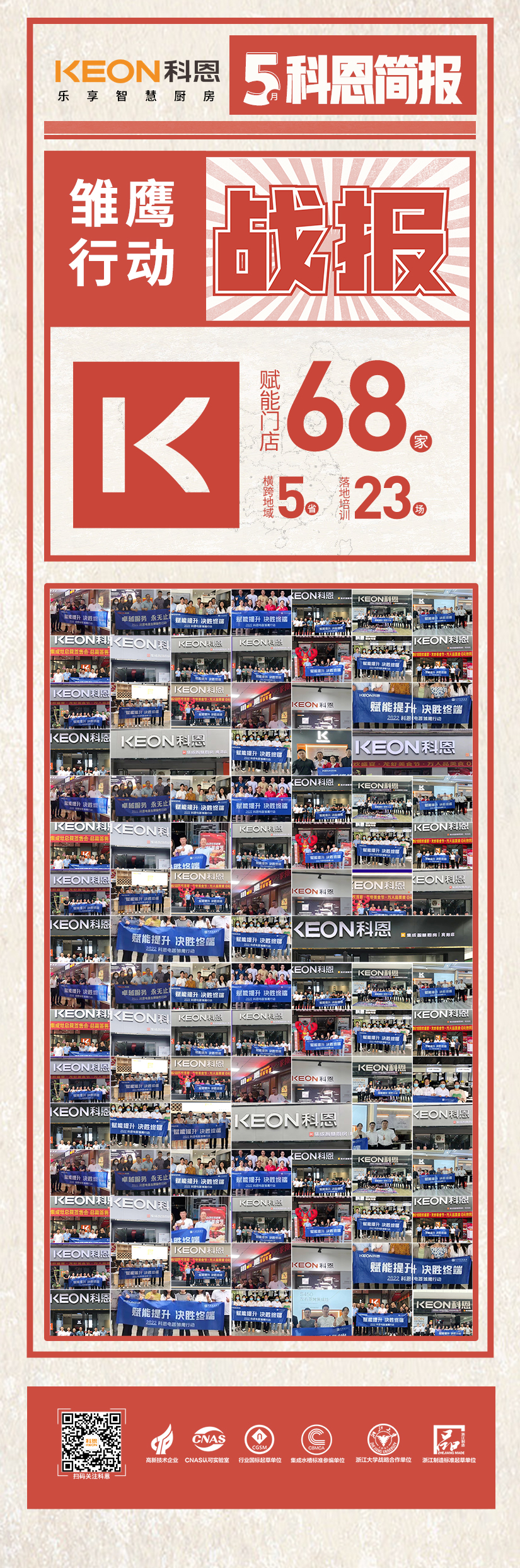 火爆五月,科恩電器積極開展強商育商培訓(xùn)賦能,搶抓市場重構(gòu)窗口期,賦能提升,決勝終端:科恩2022雛鷹行動、金牌服務(wù)、總裁簽售會、科恩新門店等活動在全國各處落地開花,好評不斷,為全面推動經(jīng)銷商高質(zhì)量發(fā)展提供有利保障。