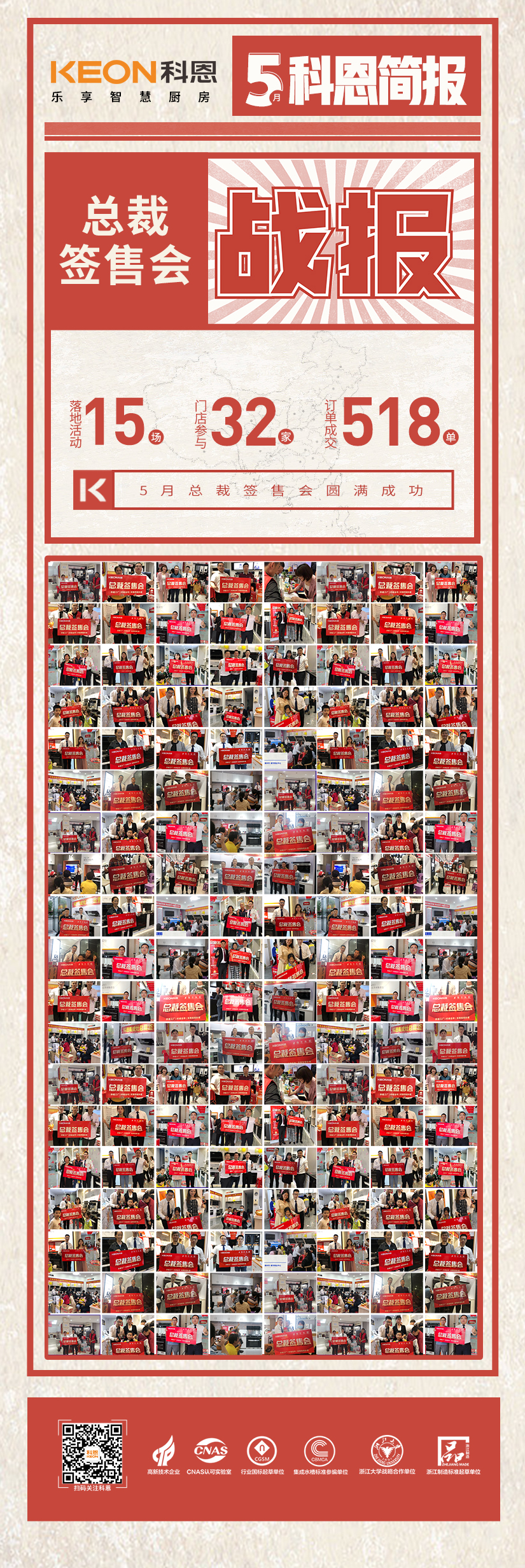 在活動前期,總部團隊根據(jù)市場需求策劃活動方案、精準把控活動進程、有條不紊進行造勢準備、協(xié)助經(jīng)銷商進行前期蓄水及邀約客戶,把每一個細節(jié)落實到位,有序推進活動順利展開。活動前期事無巨細的高效準備為活動爆單奠定了強有力的鋪墊,門店進店率、轉(zhuǎn)化率和成交率達到質(zhì)的飛躍,簽單量提升200%!在疫情對實體經(jīng)濟造成巨大沖擊時期,科恩集成灶憑借其強大的企業(yè)綜合實力、積極的強商育商扶商政策、靈活多變的雙線聯(lián)動戰(zhàn)略等核心競爭優(yōu)勢,搶占市場先機,完美實現(xiàn)彎道超車。