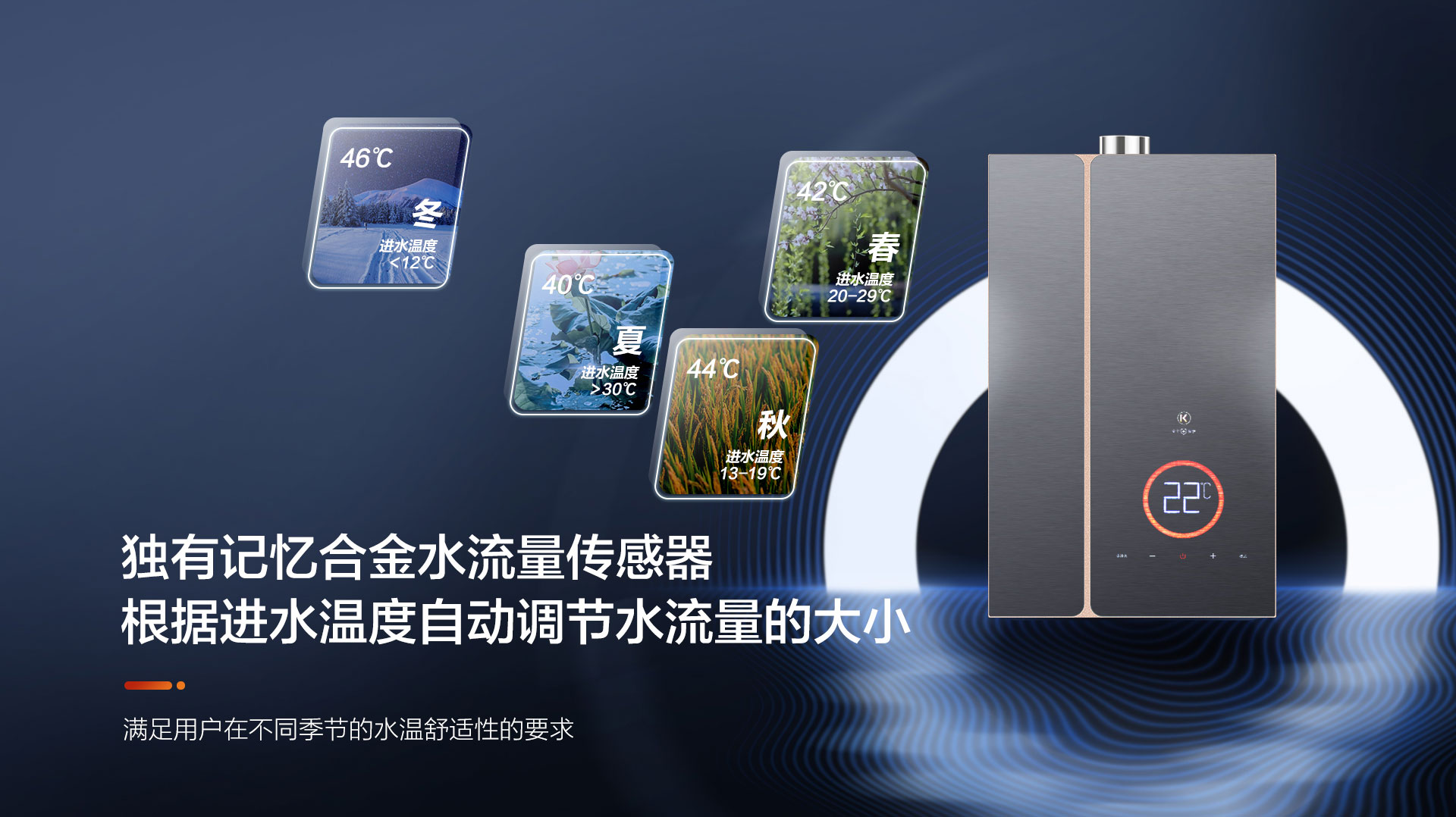 出水溫度不穩(wěn)定,冬天水太冷,夏天水太熱!再加上全屋多點(diǎn)用水,水量忽大忽小,水溫忽冷忽熱,舒適沐浴的好興致全被打破!科恩18Q6零冷水燃?xì)鉄崴鳘?dú)有記憶合金水流量傳感器,可根據(jù)進(jìn)水溫度自動(dòng)調(diào)節(jié)水流量大小,滿足用戶在不同季節(jié)的水溫舒適性的要求,新穎LED七彩顯示屏,搭載AI智控系統(tǒng),一鍵精準(zhǔn)恒溫,快捷便利。