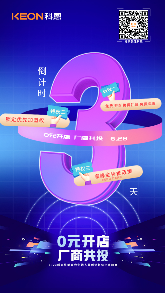 6月28日2022科恩終端聯(lián)合創(chuàng)始人共創(chuàng)計劃暨招商峰會將在廚具之都嵊州隆重舉辦,本次峰會將以“0元開店,廠商共投”為主題,邀請來自全國各地的行業(yè)精英、投資大佬匯聚一堂,共同探討廚電行業(yè)發(fā)展趨勢,解鎖集成灶行業(yè)新賽道趨勢密碼,多維驗證科恩集團(tuán)軟硬厚實力,屆時,將為各位來賓解讀限時政策內(nèi)容,為各位投資人提供一個潛力無限,共創(chuàng)霸業(yè)的優(yōu)秀共創(chuàng)平臺。