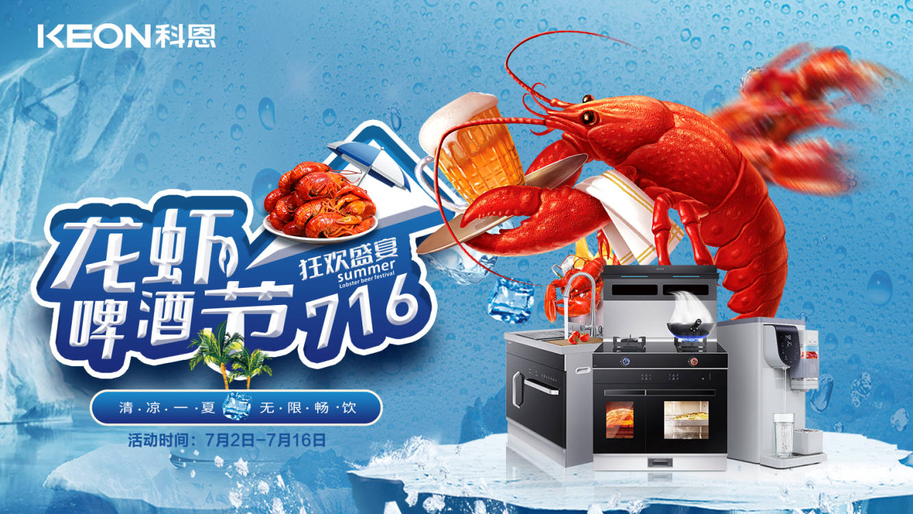 618狂歡盛宴的科恩龍蝦美食節(jié)還沒(méi)過(guò)癮?這個(gè)七月 ,科恩集成灶繼續(xù)為你續(xù)上期待已久的夏日限定之旅——科恩龍蝦啤酒節(jié)!