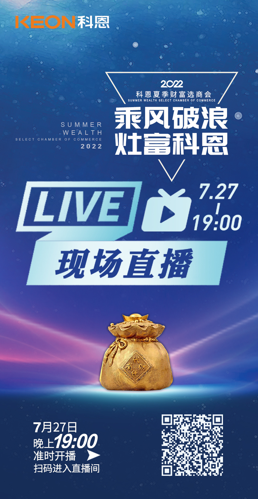乘風(fēng)破浪·灶富科恩2022科恩夏季財富選商會進入倒計時1天,鑒于疫情呈多點散發(fā)多地頻發(fā)的形式,科恩電器將于7.27晚19時召開全國直播線上選商會,用直播打破地域局限,“0距離”交流,足不出戶亦能覓得良機!
