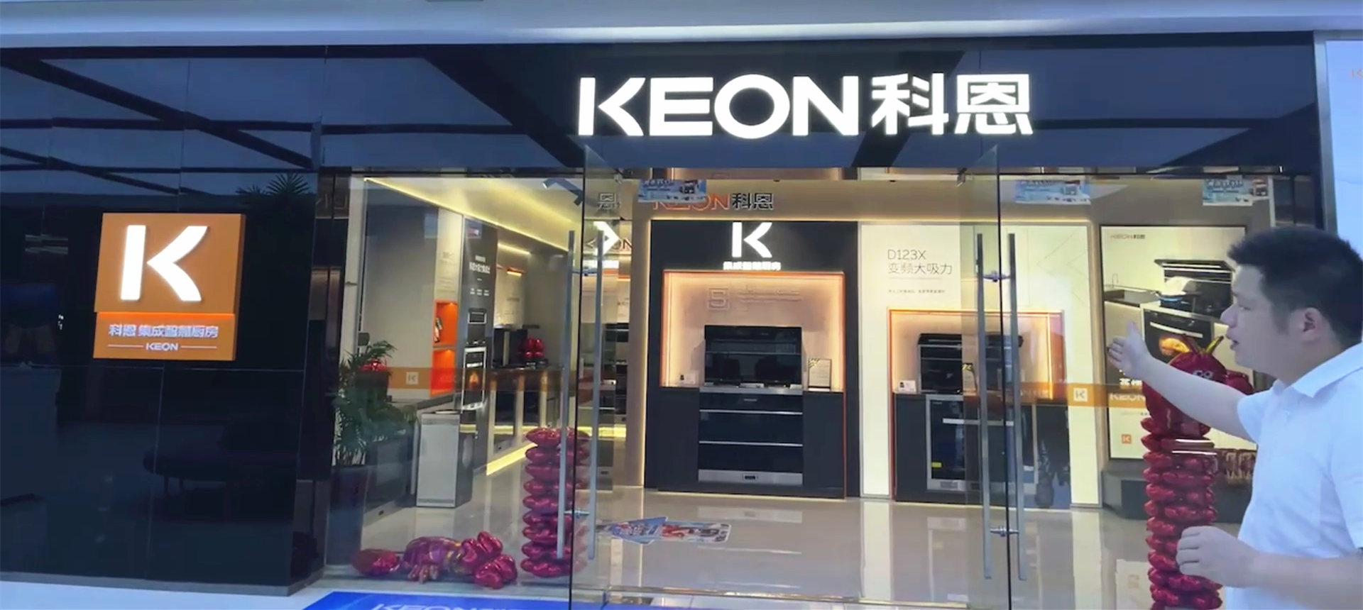 科恩營銷副總監--陳青龍帶領大家沉浸式走進科恩,通過鏡頭直觀地了解科恩文化、榮譽及企業發展史,并向大家展示了廚房文化科技體驗館及1:1打造的科恩新門店展廳??贫餍麻T店通過模塊化的方式,將核心產品模塊以及開放式廚房體驗場景植入門店,通過打造終端差異化銷售場景,構建新的動銷系統店面營造,從“新”超越!