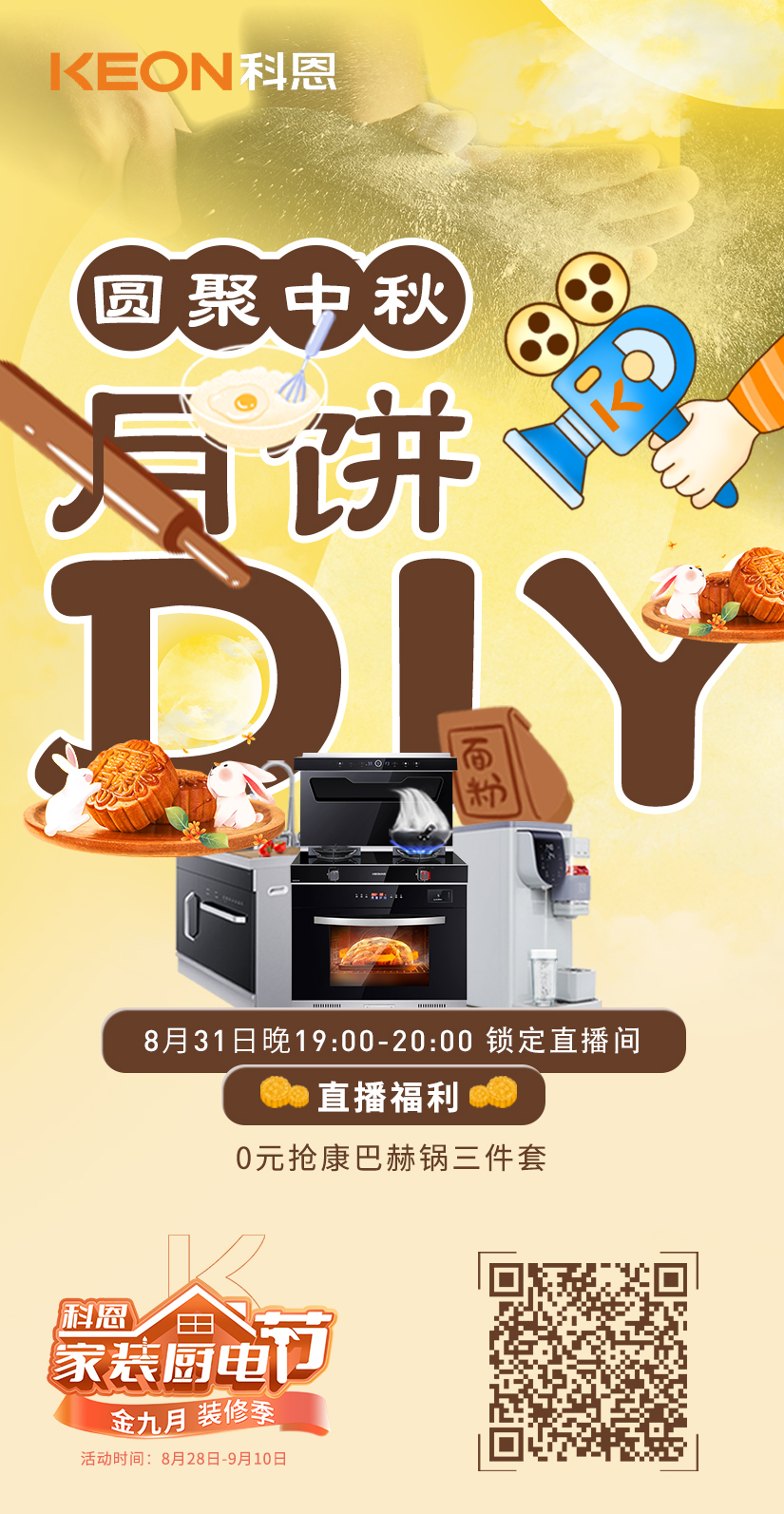 講真,吃久了外面買的月餅,總有那么一刻想要自己做來試試,而看到種種月餅DIY教程,呃……似乎難度……有點大?。。?!于是!科恩集成灶就貼心的在科恩家裝廚電節(jié)活動期間安排了【圓聚中秋,月餅DIY】為主題的直播活動!手把手教你用科恩集成灶做高顏值的中秋月餅,而且據(jù)說直播現(xiàn)場還有0元搶康巴赫鍋三件套的壕氣福利!