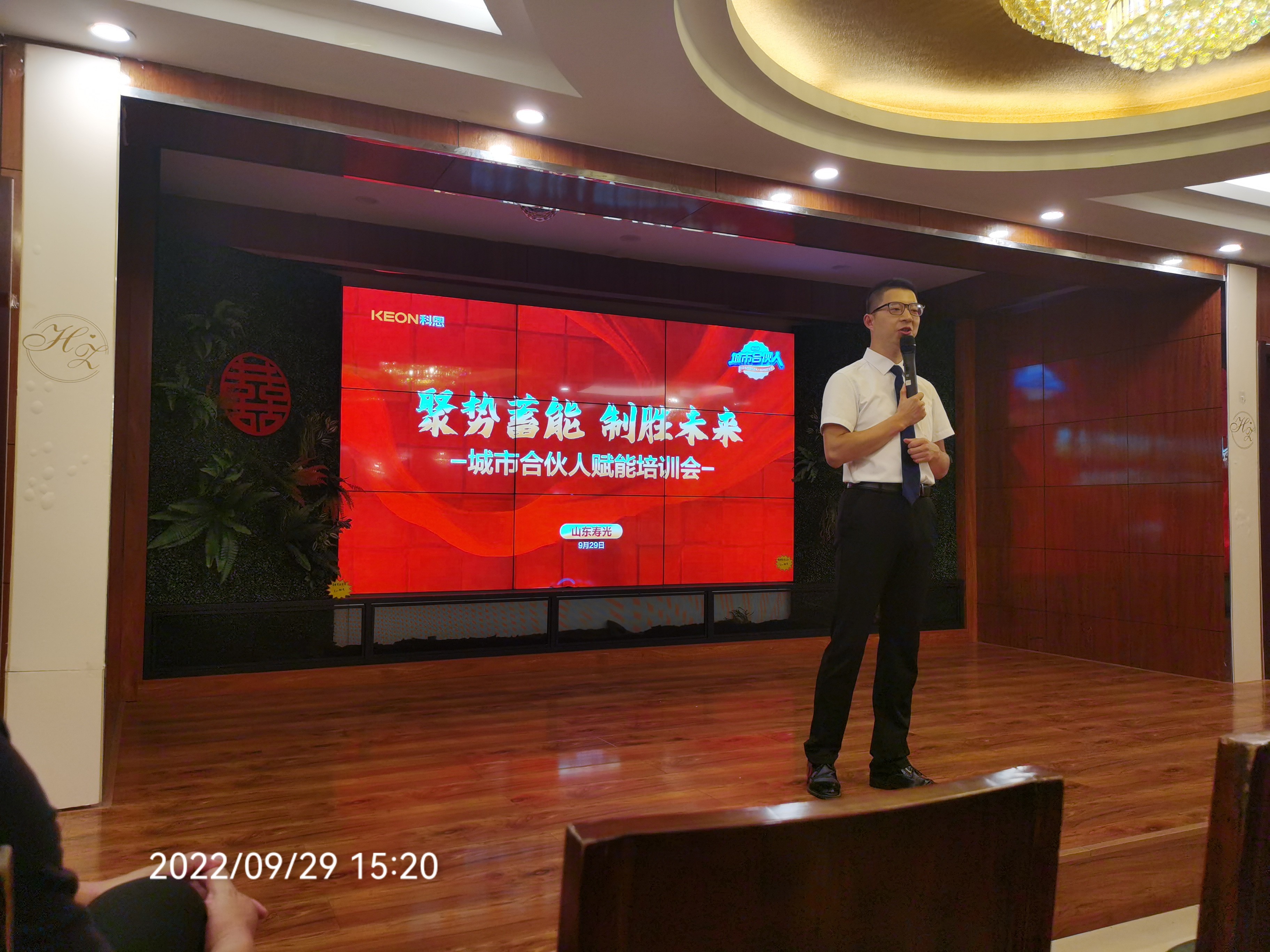 9月29日,科恩電器在山東壽光舉辦的“聚勢蓄能,致勝未來”城市合伙人培訓賦能會議取得圓滿成功!來自山東各地的百余名豪杰好漢齊集壽光,共同參與此次城市合伙人培訓賦能會議,山東省區(qū)域經理王鵬程致歡迎詞!