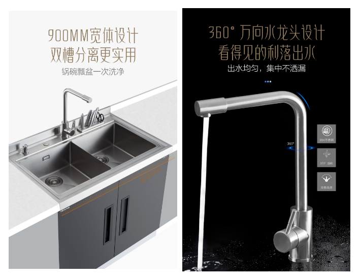 科恩X2多功能集成水槽,手工匠心鑄造,利用先進科技打造出高端鉆石品質(zhì),304不銹鋼材質(zhì),900mm寬體設(shè)計,大水槽加寬加深,無縫成型滴水不漏,小R角污垢無處可藏,X型導(dǎo)流有效排水,下水更通暢。