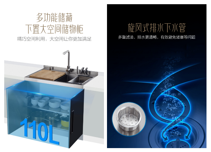旋風(fēng)式排水下水管,多重濾渣排水更通暢,ABS防臭下水器套裝設(shè)計,耐凍裂防冷凝,有效保護了櫥柜不受損傷。