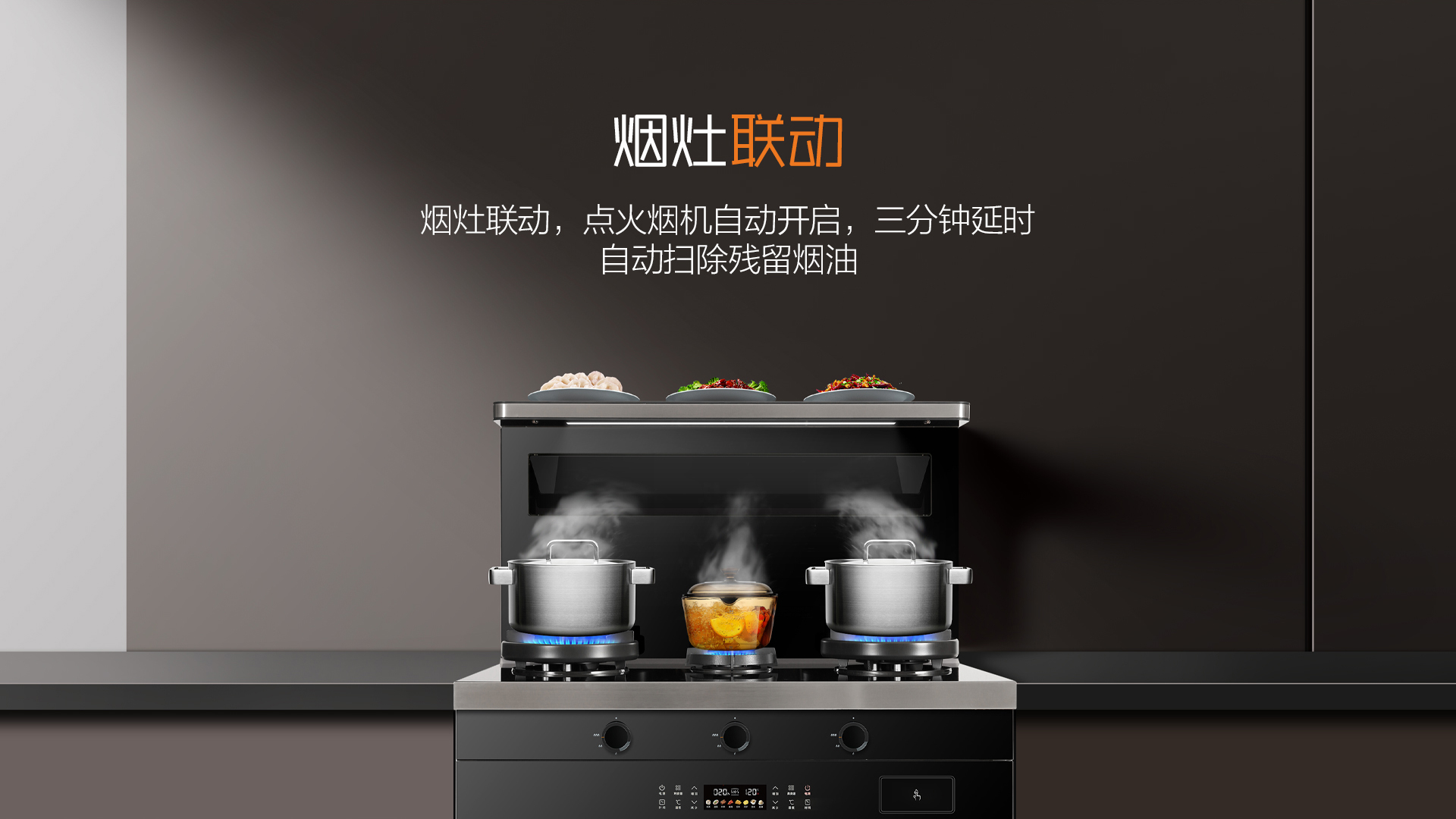 與普通煙灶聯(lián)動不同,A3系列打開灶具的同時(shí)煙機(jī)與照明燈同時(shí)打開,且煙機(jī)可根據(jù)火力大小自動調(diào)節(jié),無需再手動調(diào)節(jié),風(fēng)隨火動廚房更智能。