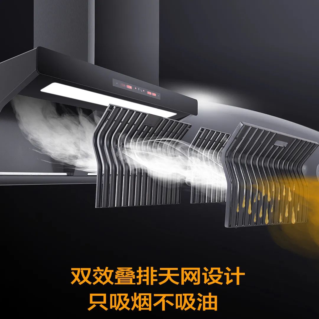科恩6530免清洗煙機,雙效疊排天網(wǎng)采用易潔太空壓鑄鋁材,經(jīng)過酸洗-噴砂工藝加之特氟龍噴涂最后高溫?zé)Y(jié),不僅不沾油、易清潔更好打理。同時,能很好的阻燃阻熱!雙效疊排天網(wǎng)將油煙盡數(shù)隔離在外,真正做到只吸煙不吸油。煙腔無需清潔,也能潔凈如新!