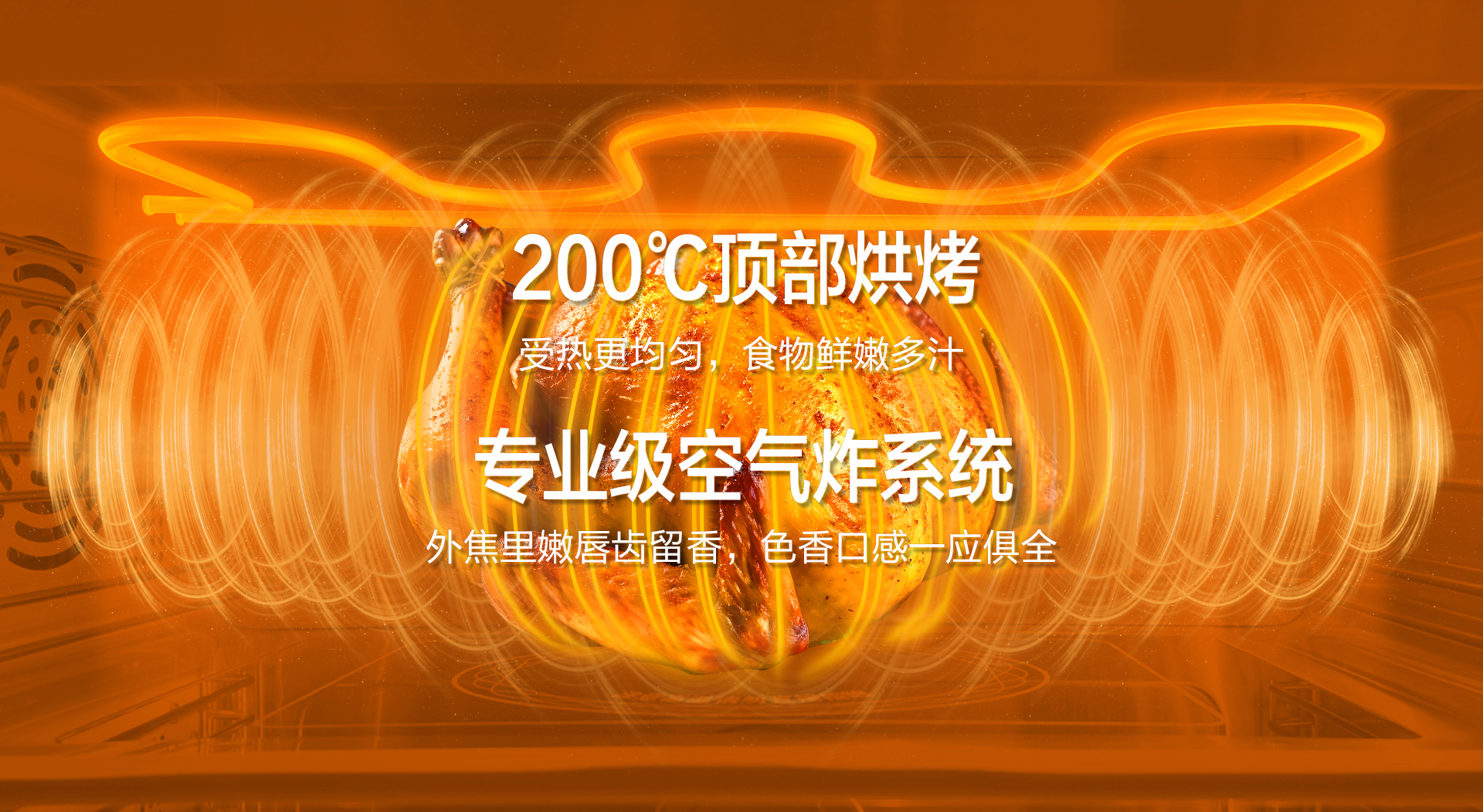 200℃頂部烘烤,受熱更均勻,食物鮮嫩多汁。