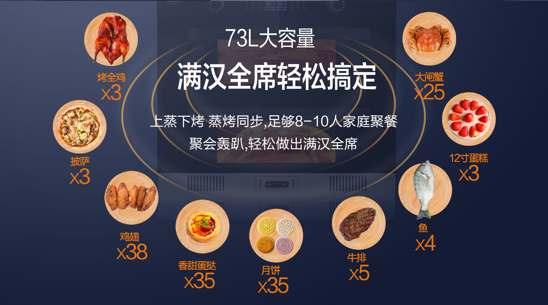 噴氣式4D立體蒸,360°動(dòng)態(tài)蒸汽內(nèi)循環(huán),還原食材真鮮美味。