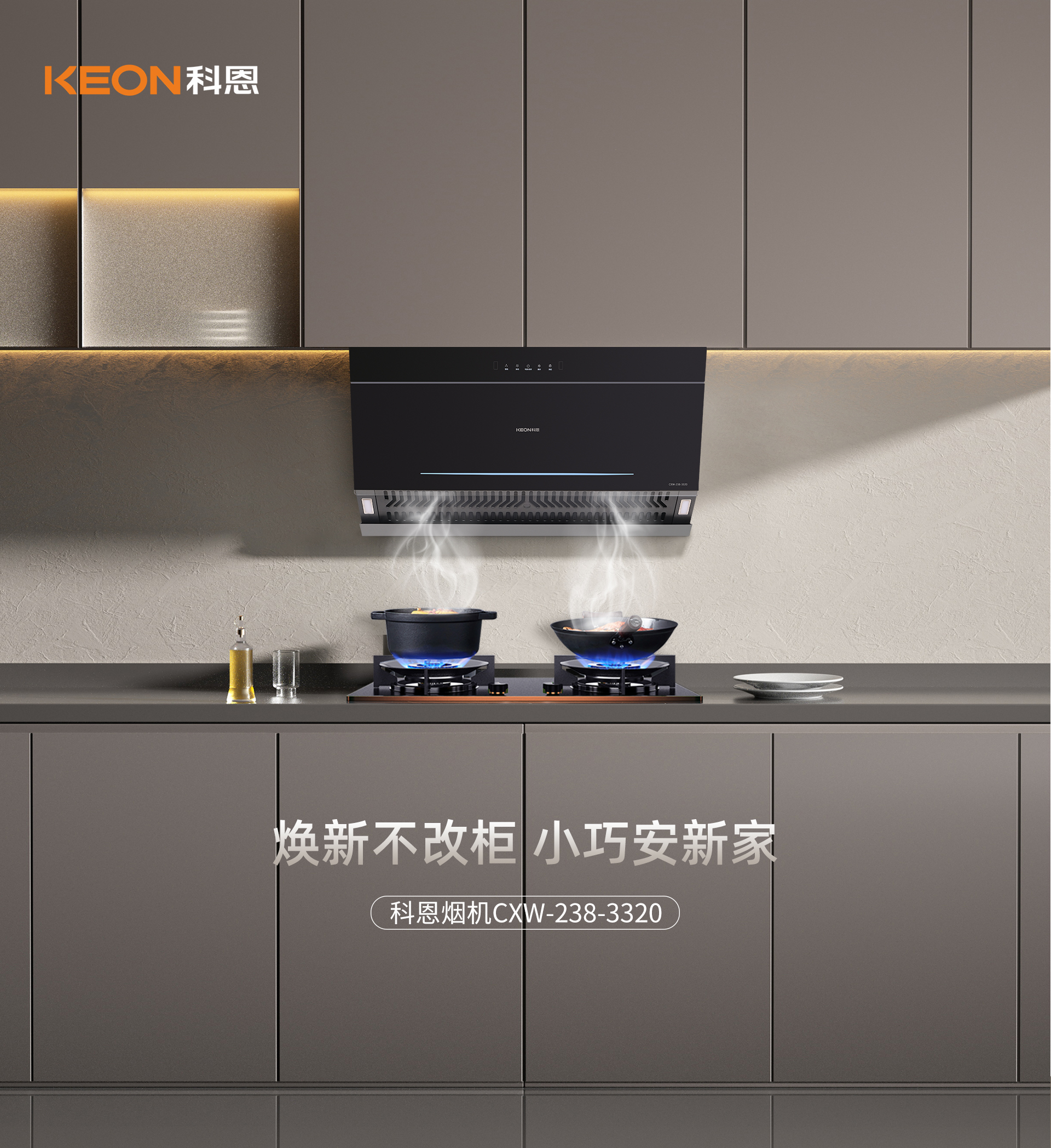 科恩3320煙機具有諸多顯著優勢。首先,煥新不改柜,小巧的機身能夠輕松安于任意櫥柜之間,無需對櫥柜進行大規模改造,為用戶節省了時間和成本。
