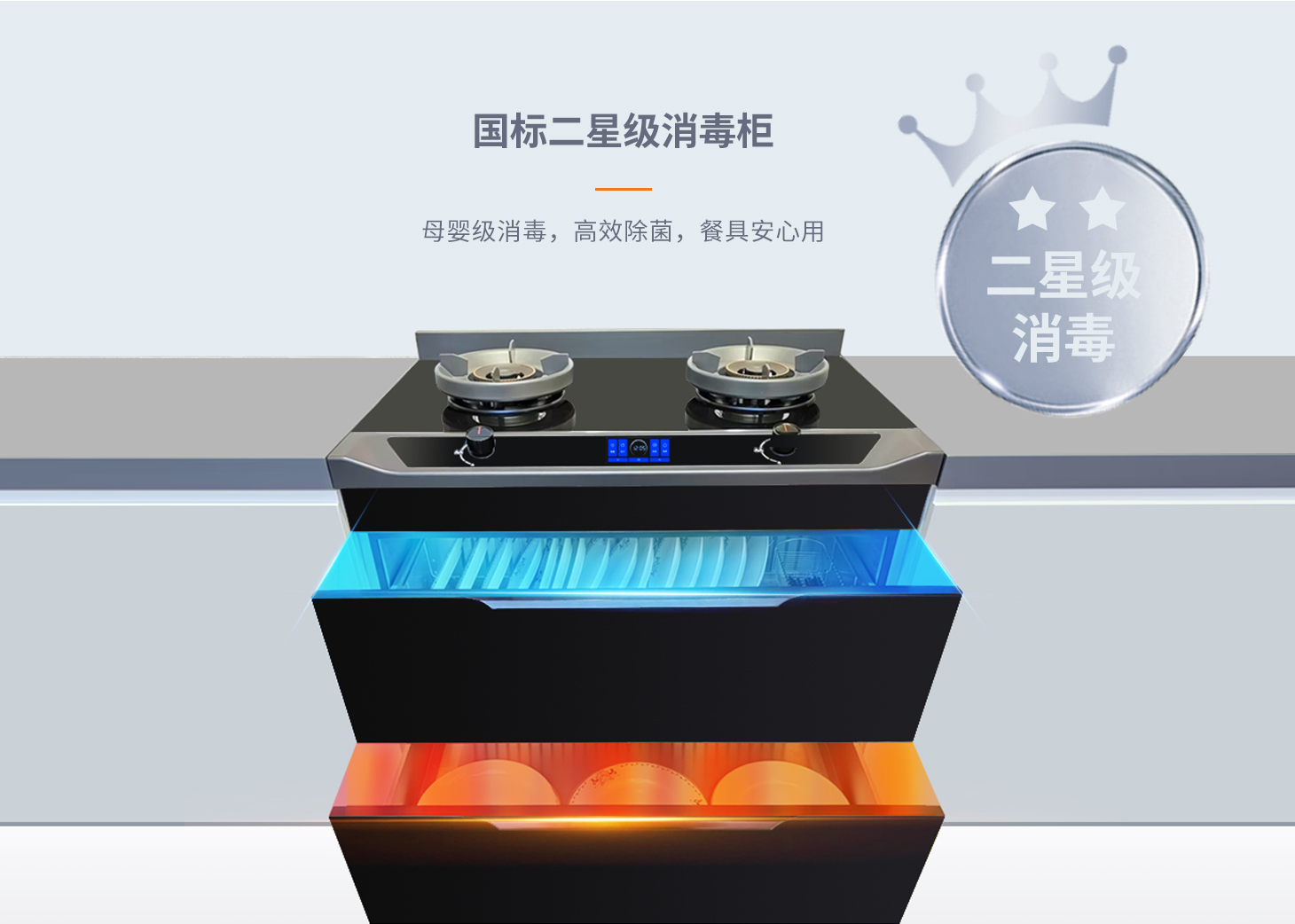 全域消殺,健康護航避免餐具二次污染,呵護全家人健康安全。科恩集成烹飪中心185L大容量消毒艙體紫外線+臭氧+紅外三重消殺奶瓶餐具統統立體滅菌二星級認證看得見的安全