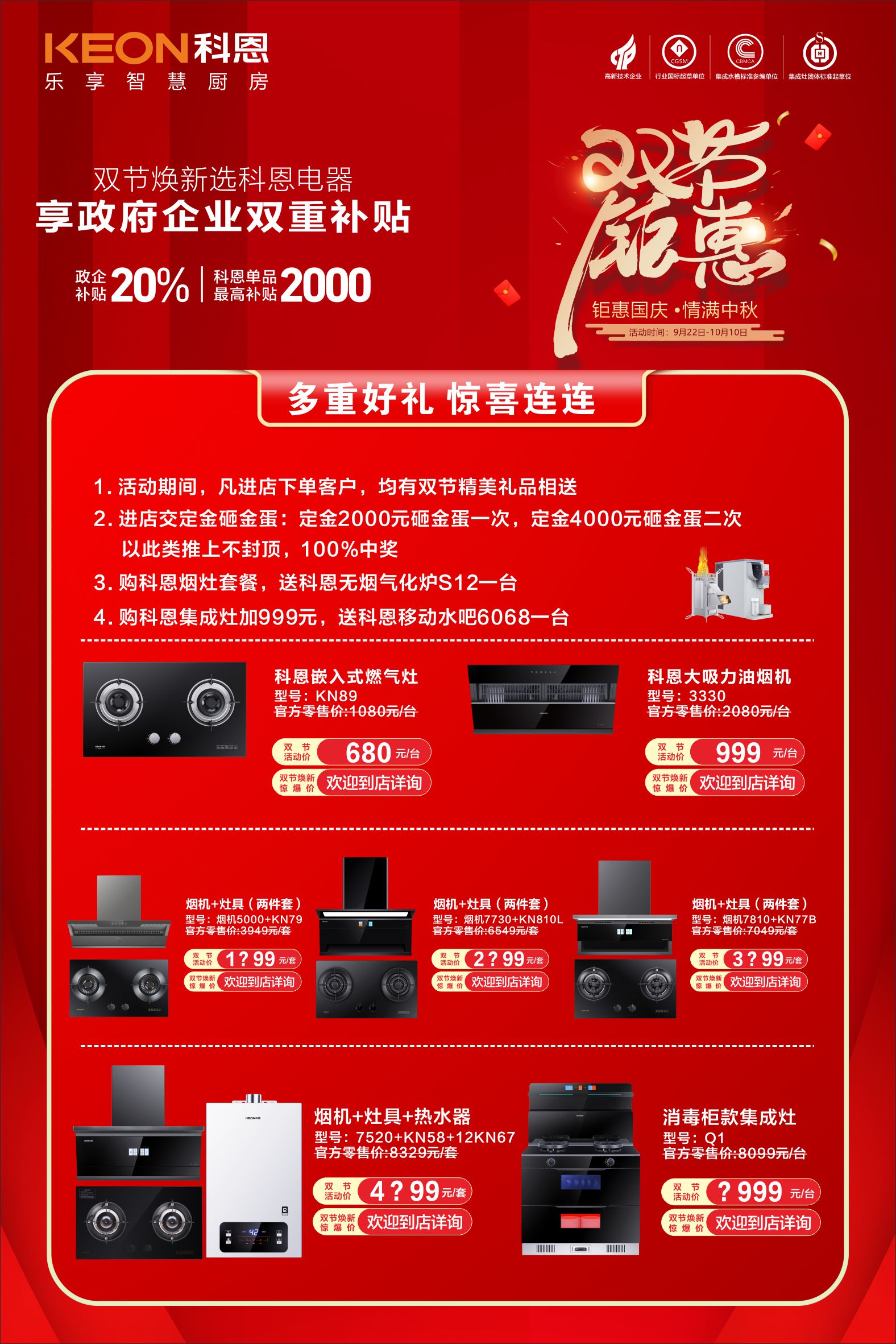 鉅惠國慶,情滿中秋!科恩雙節鉅惠活動震撼開啟,解鎖廚電專屬禮遇!