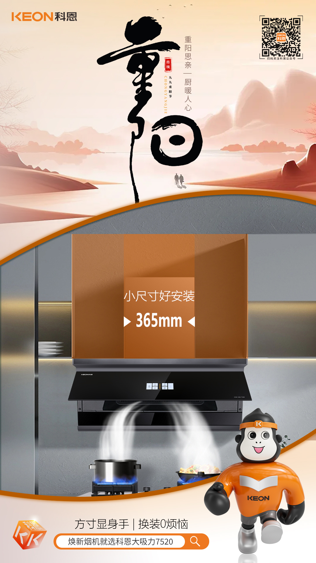 重陽又至,秋意漸濃。登高祈福,賞菊飲酒,孝心綿長,廚房煙火,承載三代溫情。一套省心廚電,讓團圓滋味更圓滿,把對長輩的愛,藏進每一頓餐食里。科恩廚電助你打造,一個舒適、便捷、安全的廚房環境,讓孝心在廚房中綻放。