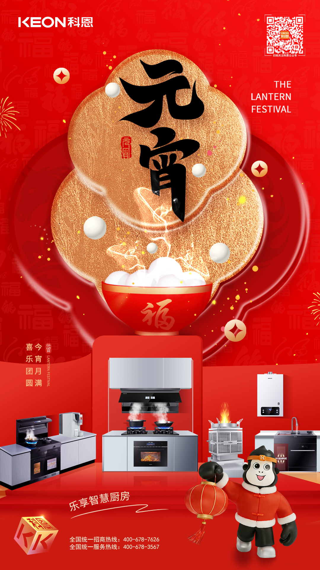 正月十五元宵至,花燈映月慶團圓。廚房作為年味聚集地,此刻正上演著煎炒烹炸的熱鬧景象,湯圓的甜香、菜肴的鮮香交織成幸福的味道。但油煙彌漫、火候難控等煩惱,往往沖淡烹飪愉悅。科恩廚電以科技賦能,讓無煙健康與美味團圓兼得,讓每個家庭都能自由呼吸間,暢享元宵盛宴。