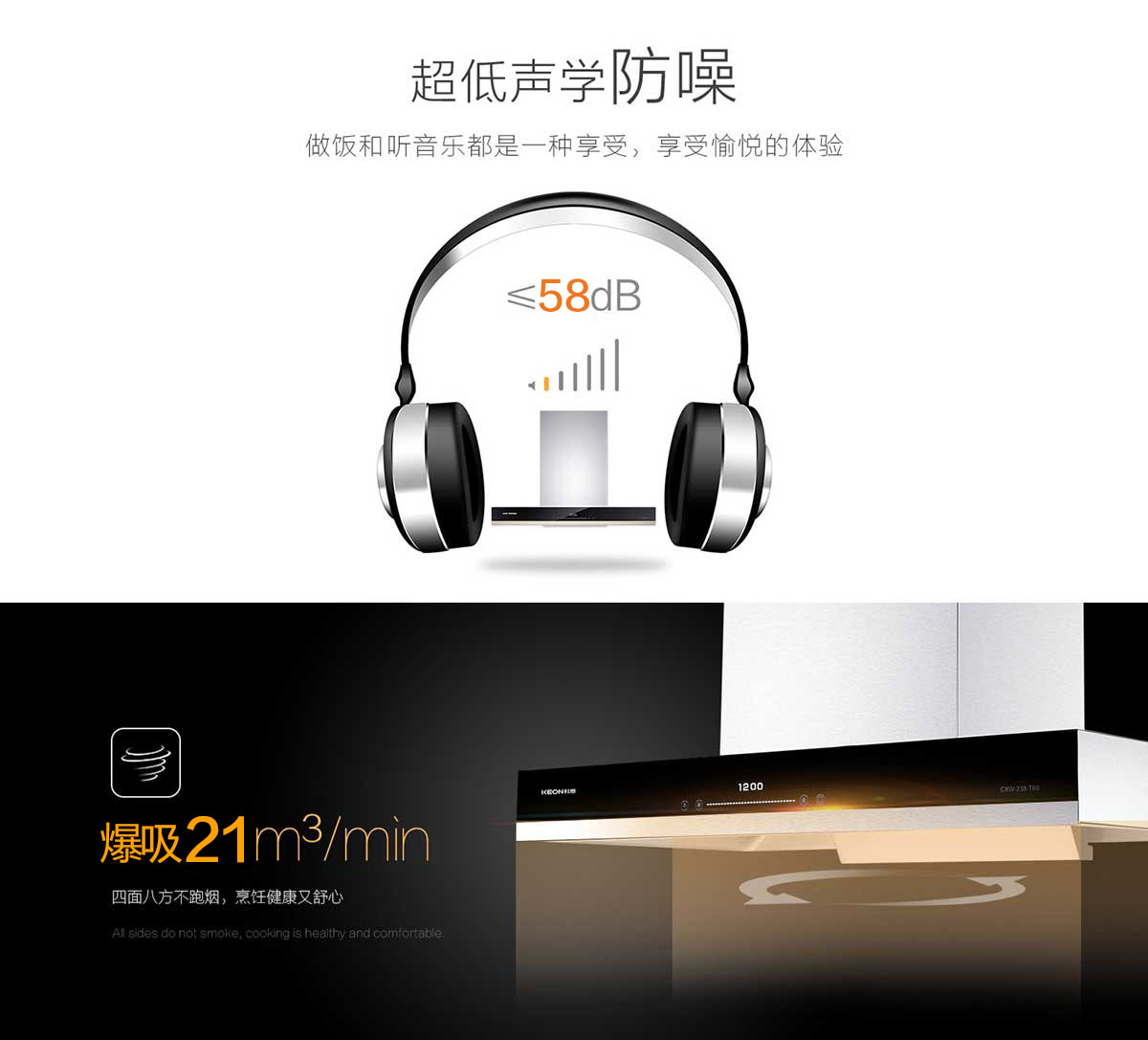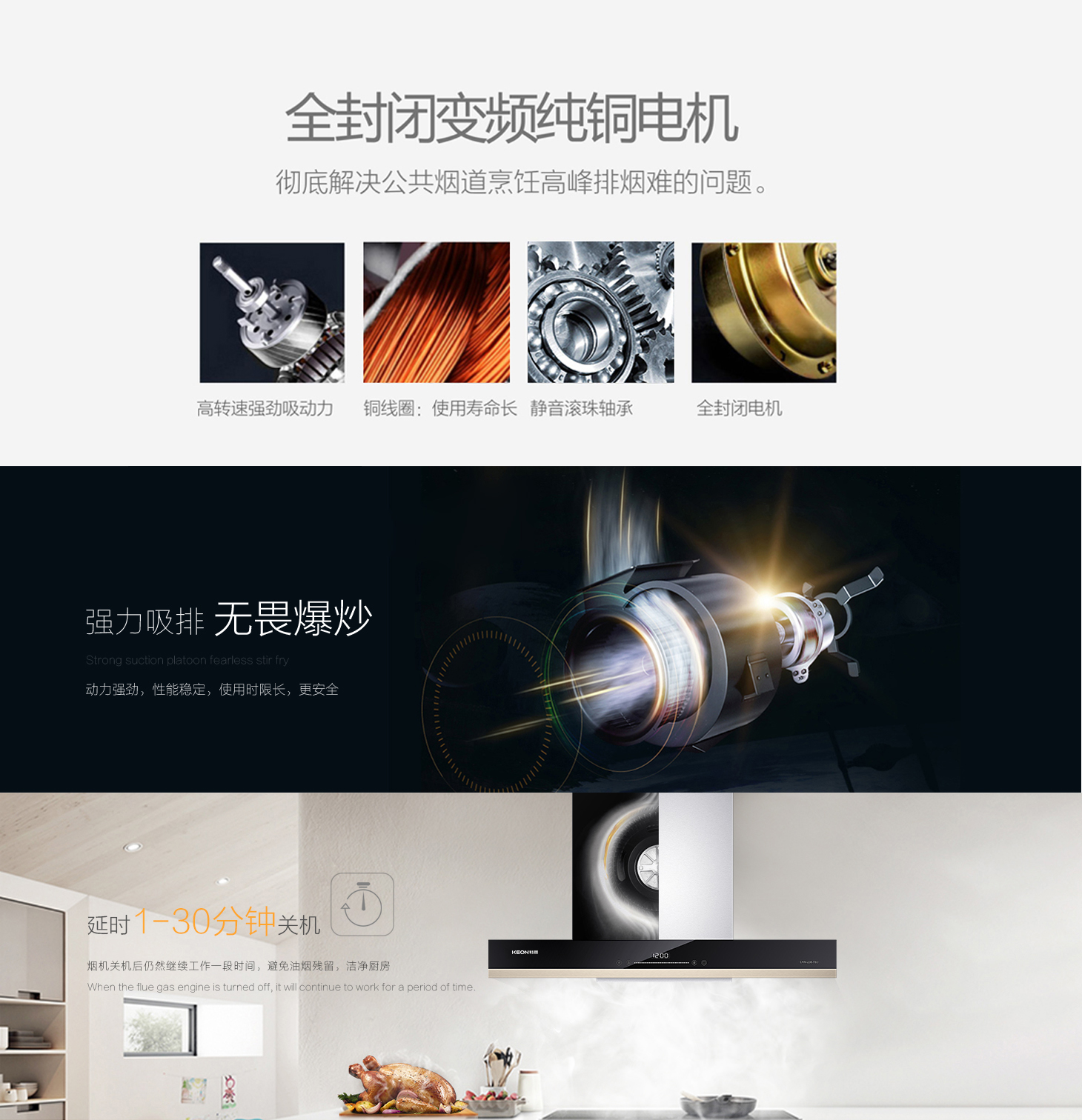 • 變頻自動增壓功能,防止做飯高峰期油煙倒灌現象。