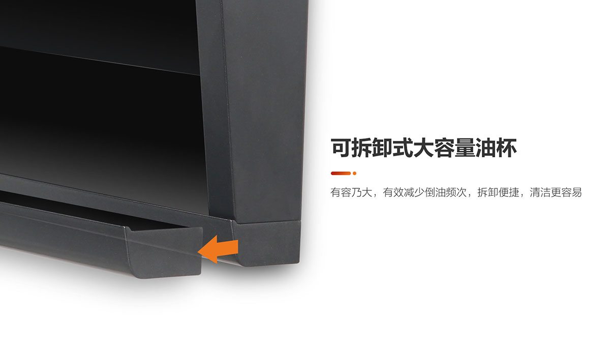 • 可拆卸式大容量油杯,有容乃大,有效減少倒油頻次,拆卸便捷,清潔更容易