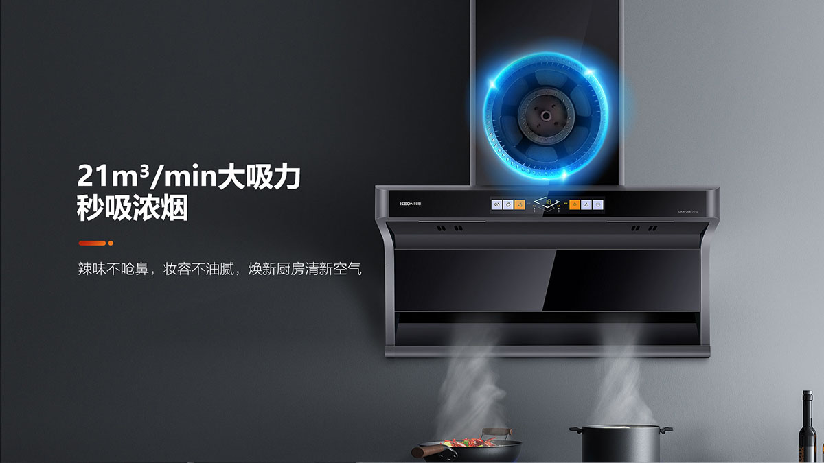 • 21m3/min颶風吸力,瞬吸濃煙,辣味不嗆鼻,煥新廚房清新空氣