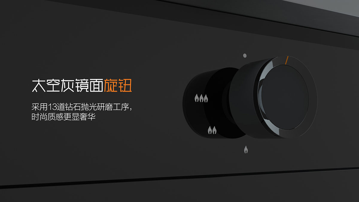 • 太空灰鏡面旋鈕,采用13道鉆石拋光工序,曲線流暢,時尚大氣