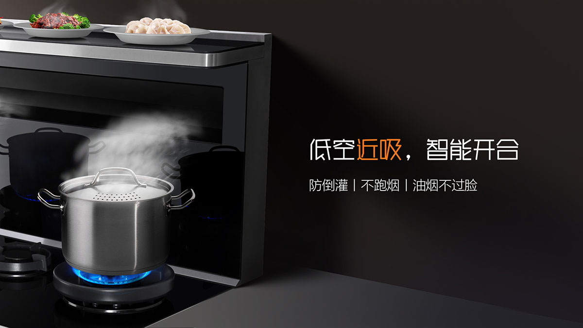 • 一級能效,21.5m3/min寬域近吸攏煙,油煙不過臉,烹飪更隨心