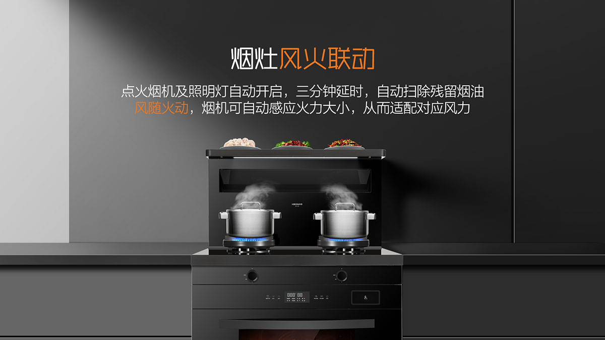 - 煙灶聯動,點火自動同步開啟油煙機