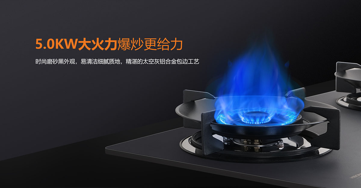 - 5.0KW大火力,凈藍(lán)猛火,爆炒更給力