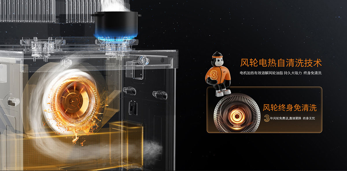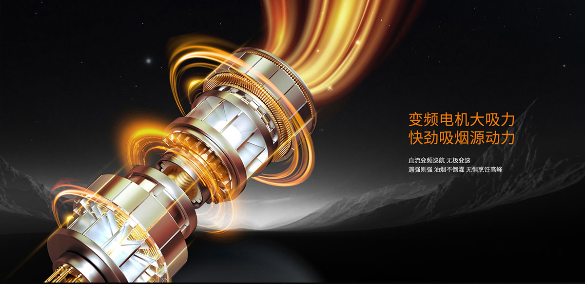 - 變頻電機(jī)大吸力,快勁吸煙源動力,遇強(qiáng)則強(qiáng),無懼烹飪高峰