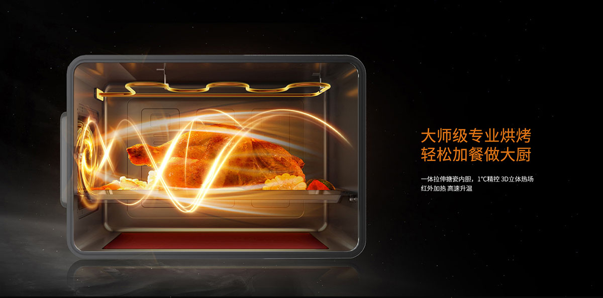 - 遠(yuǎn)紅外魔力烤:紅外加熱高速升溫,1°C精控,3D立體熱場