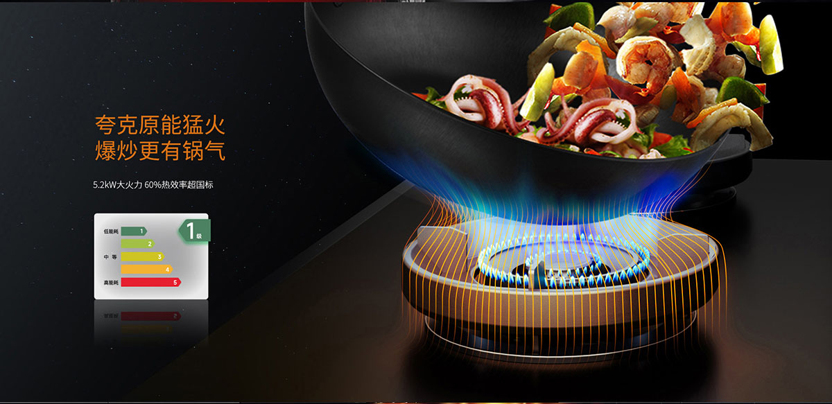 - 一級能效,5.2kW 大火力,全進(jìn)風(fēng)設(shè)計(jì),燃燒充分,爆炒給力