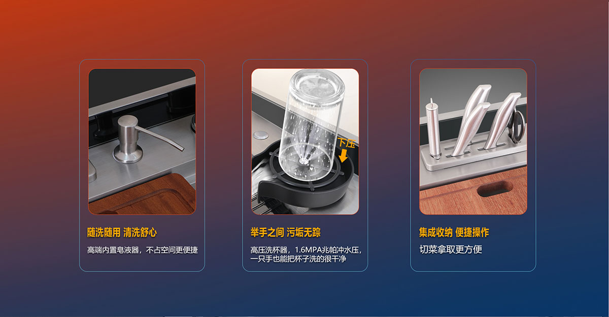 • 嵌入式刀具組合,集成收納,便捷隨取隨不占空間