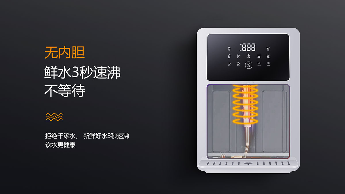 • 無內膽,拒絕千滾水,3秒速熱,無需等待