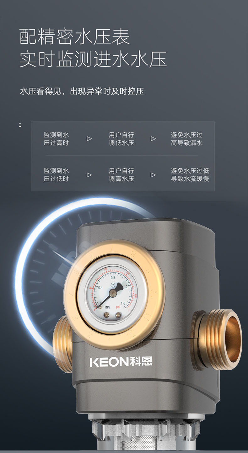 - 配精密水壓表,實(shí)時(shí)檢測(cè)進(jìn)水水壓