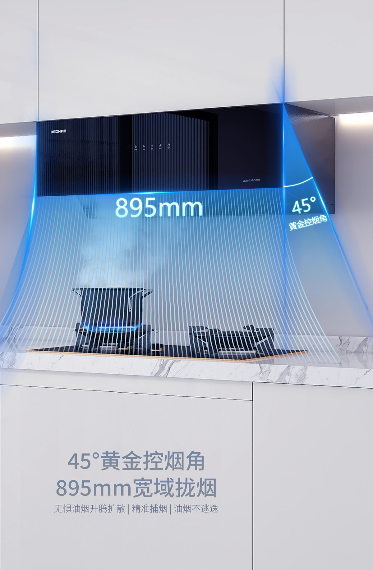 - 23m³/min颶風吸力,瞬吸油煙,打造無煙廚房
