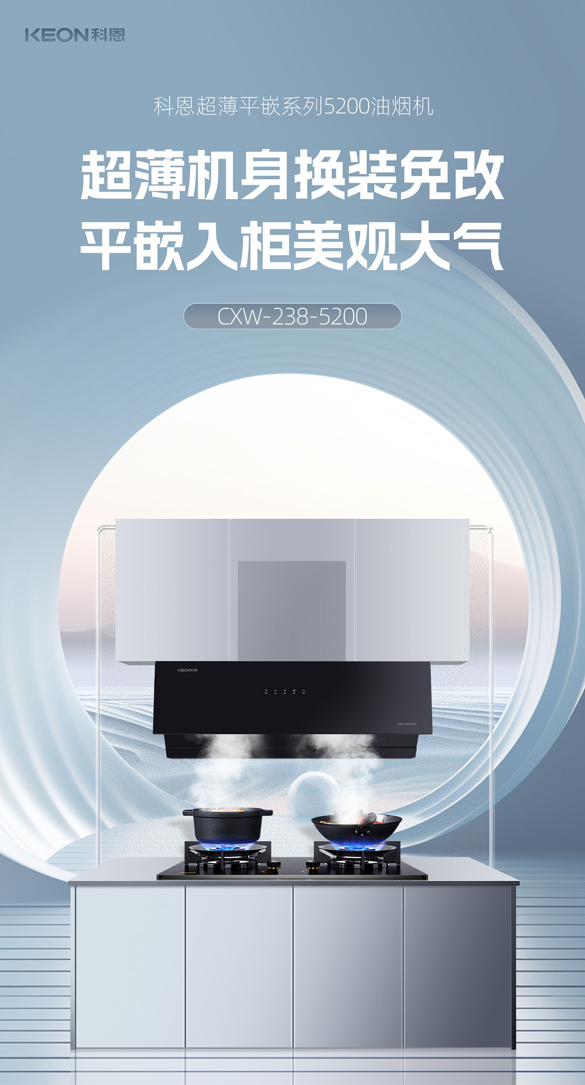 - 智啟式大隔煙屏,黃金控煙角設計,油煙不逃逸