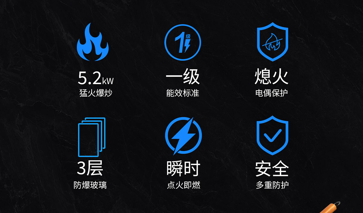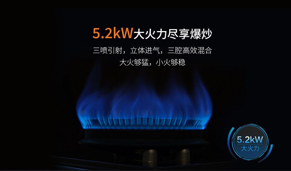 • 三噴引射,立體進氣,5.2kW大火力盡享爆炒