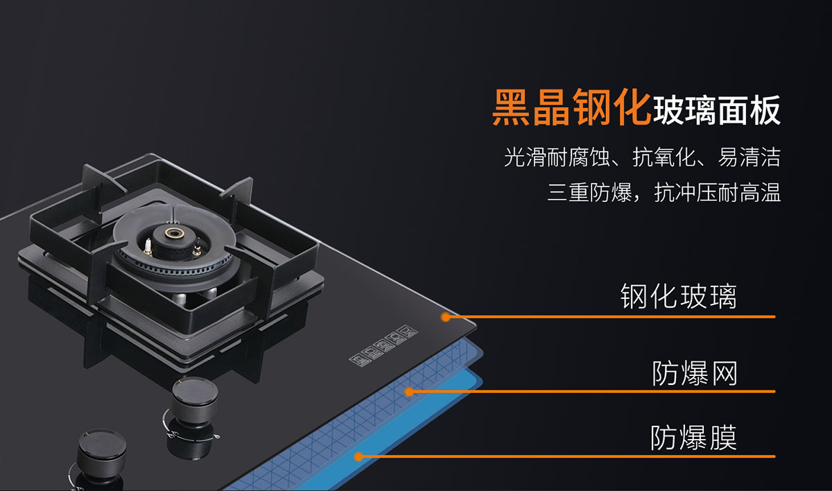 • 黑晶鋼化玻璃面板,防爆抗氧化、易清潔