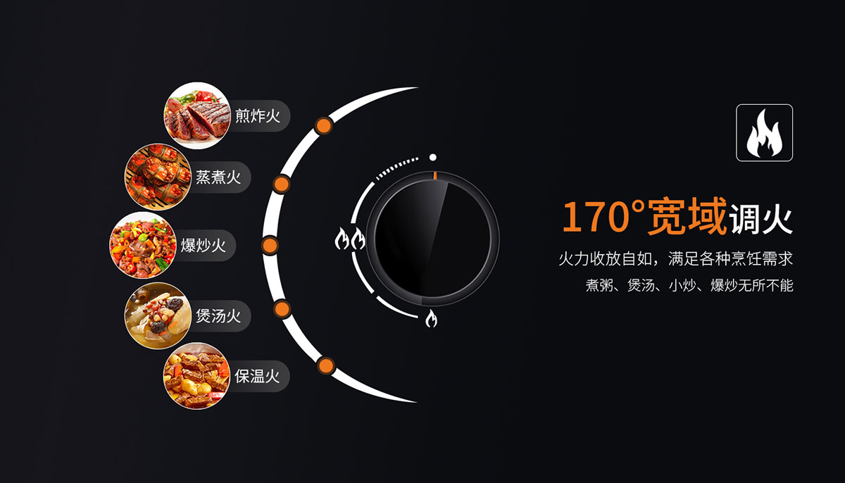 • 170°寬域調火,火力收放自如