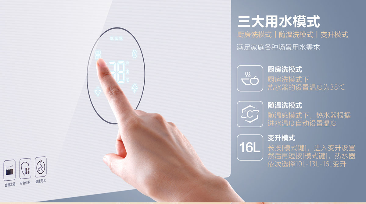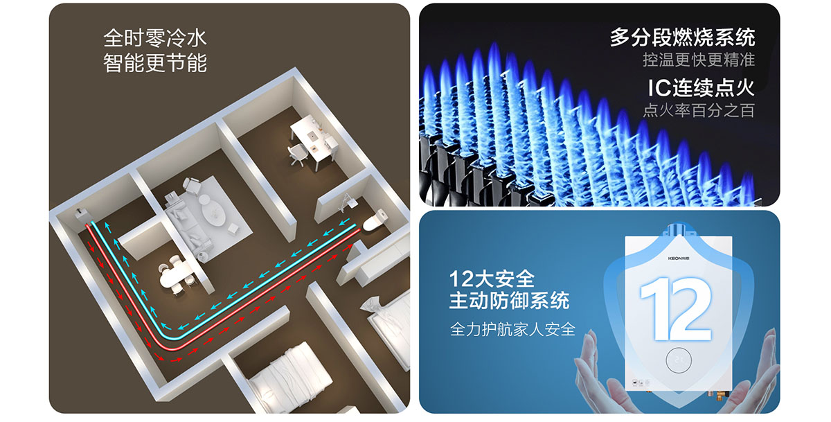 • 采⽤分段燃燒技術,⽔溫調節范圍更廣,速度更快