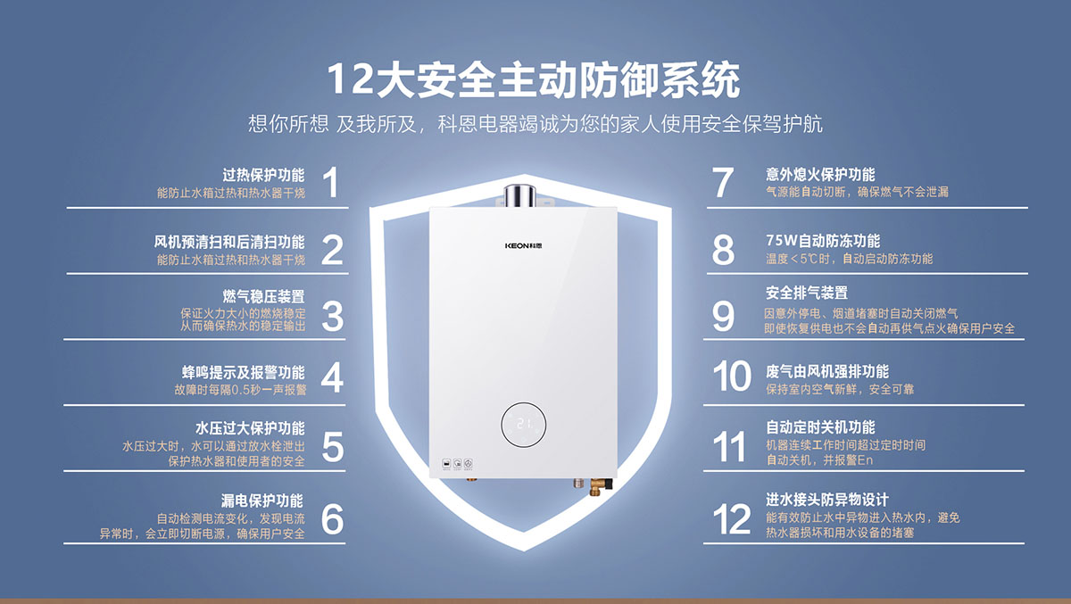 • ⻛機預清掃和后清掃功能,避免點⽕時出現爆燃及降低停⽔溫升