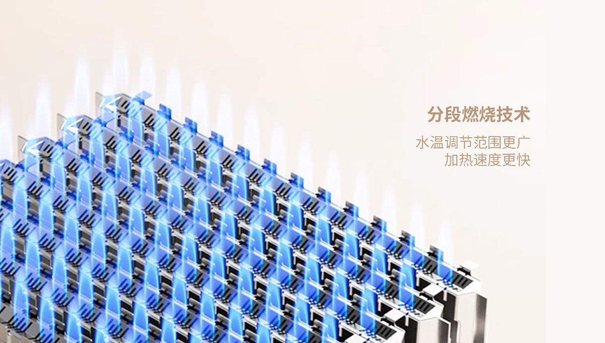 - 分段燃燒技術,⽔溫調節范圍更廣,加熱速度更快